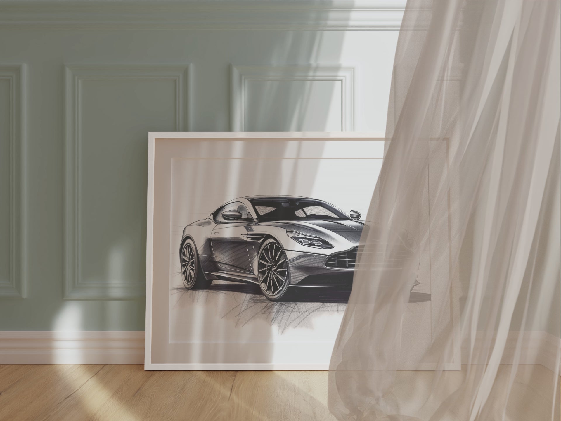 Aston Martin DB11 Pencil Sketch – Premium Poster Art for Automotive Enthusiasts